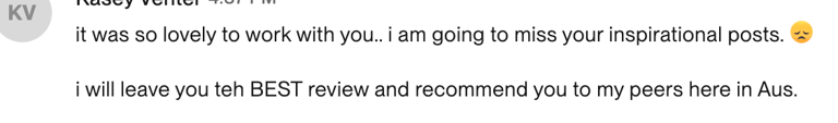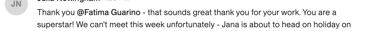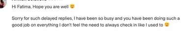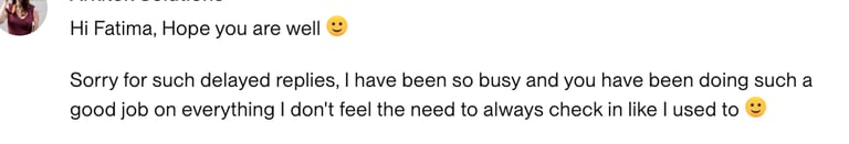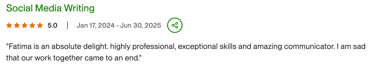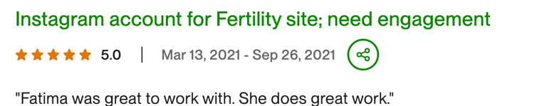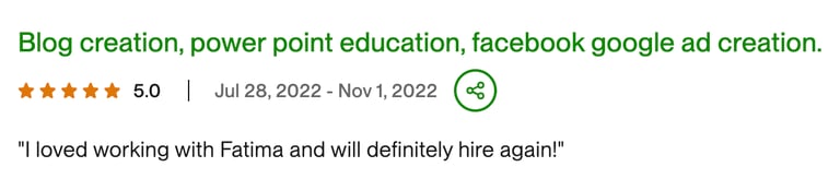 ”I loved working with Fatima and will definitely hire her again”