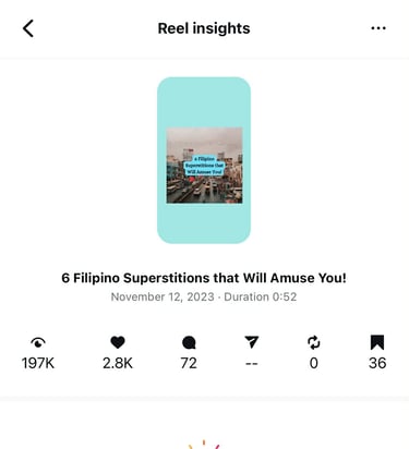Increased the number of reel views ( from 1,500 to 11,000 organic views).